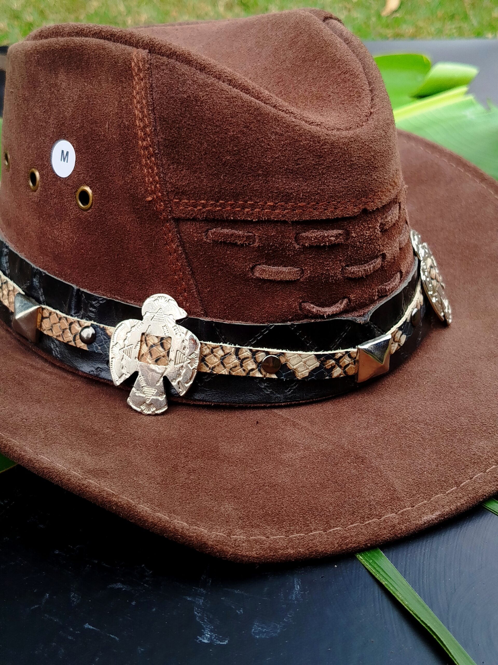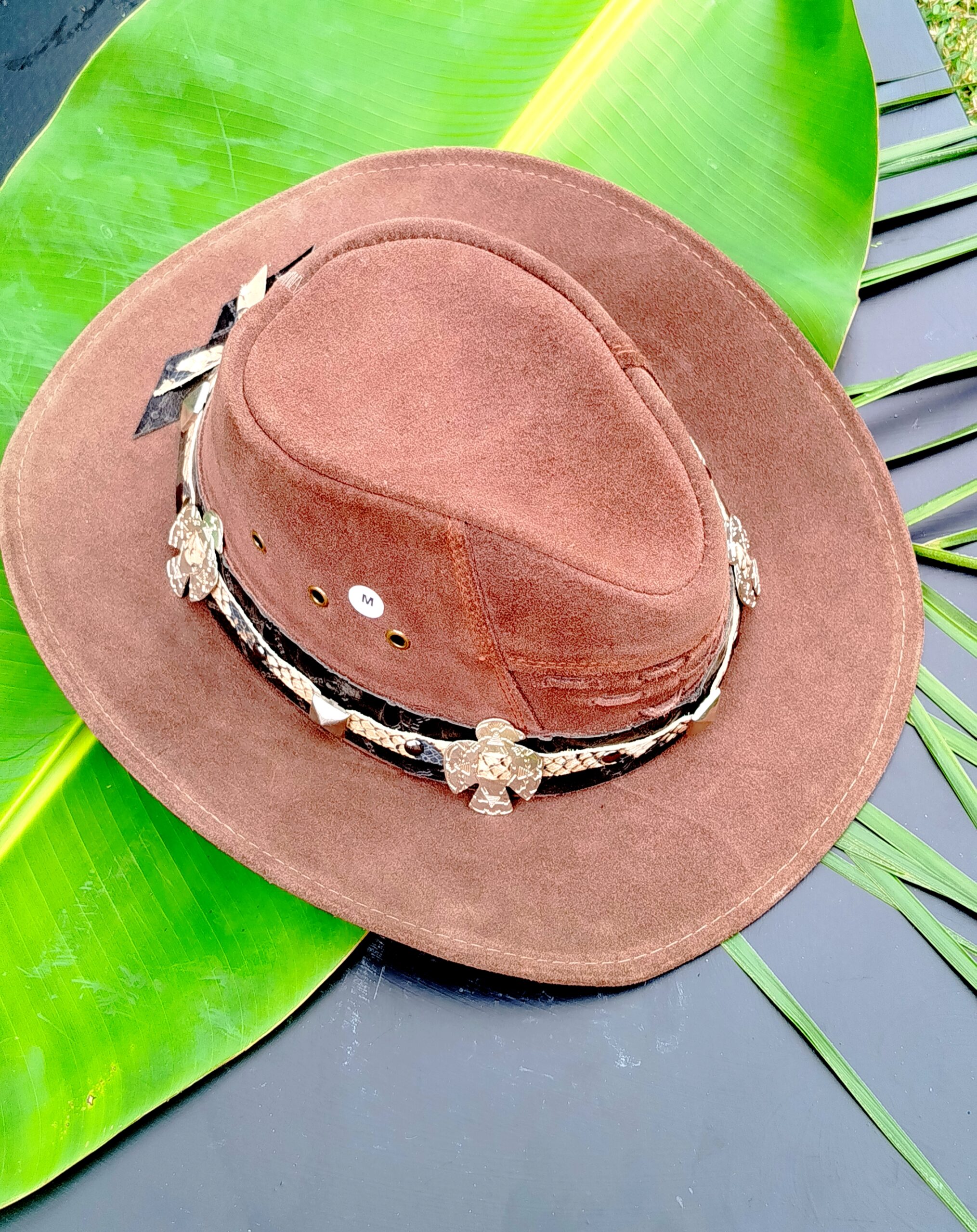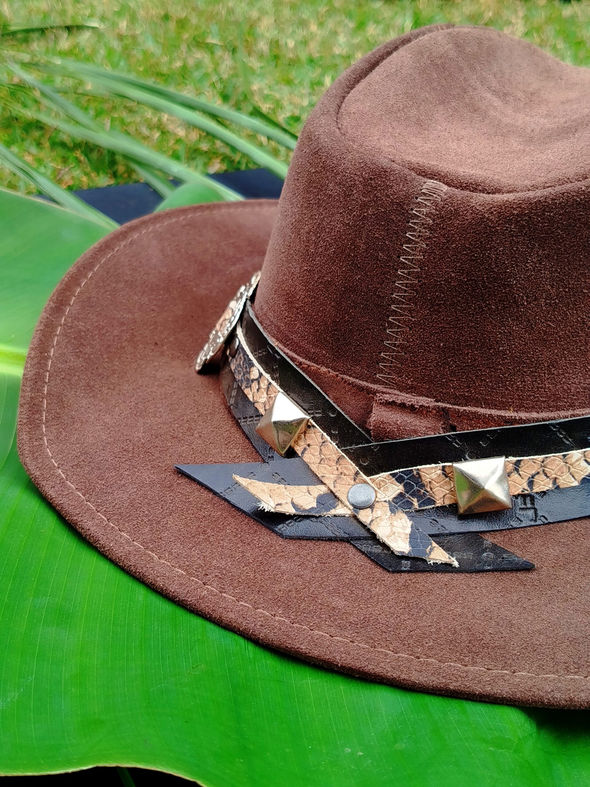 Chapéu artesanal de camurça legítimo com design High Custom. Cada detalhe é resultado de um processo de personalização exclusiva, garantindo autenticidade, estilo e presença marcante.