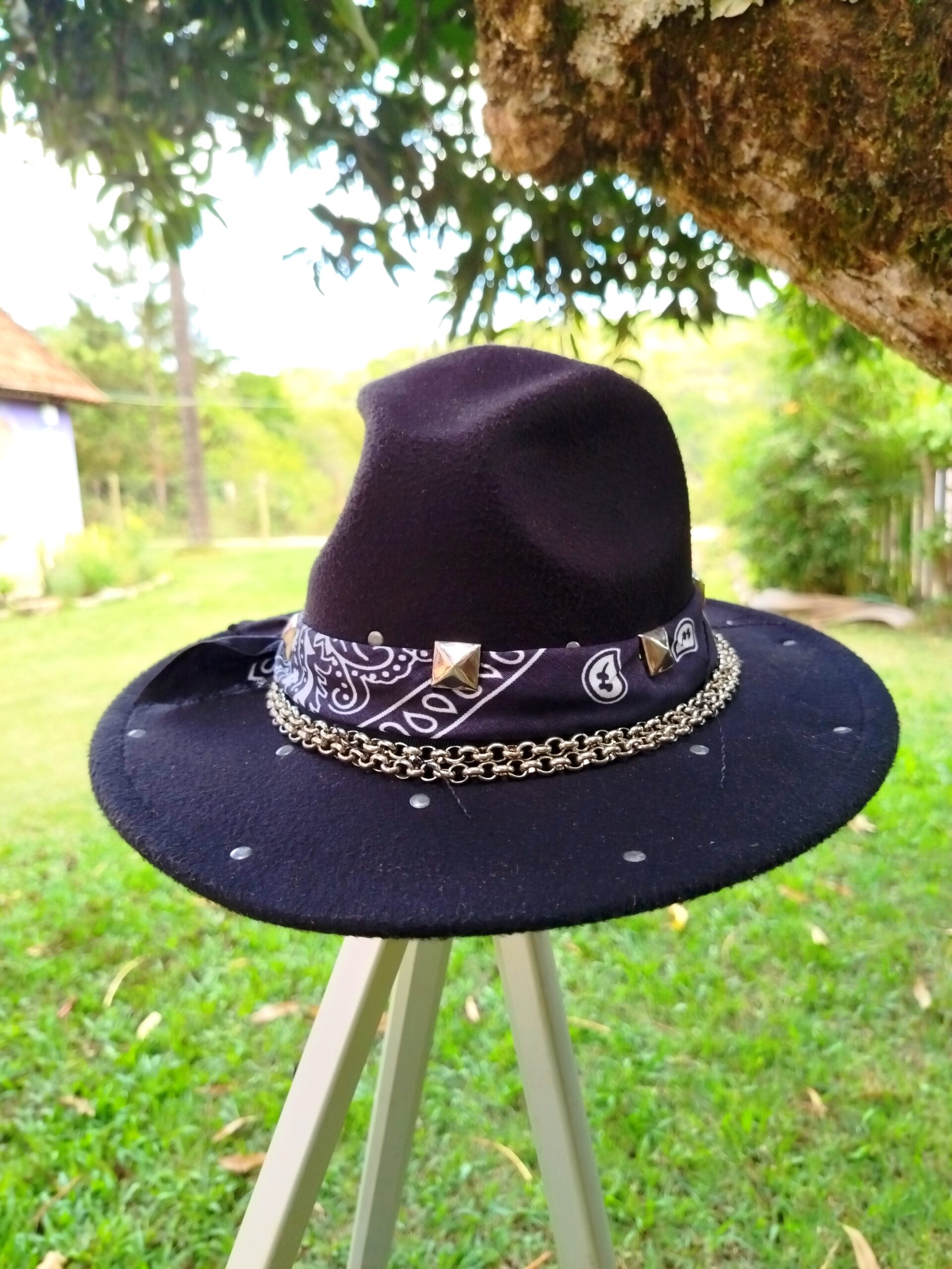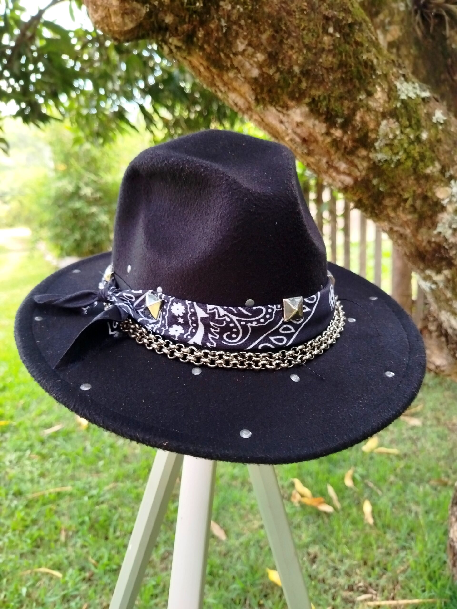 Cada modelo é customizado manualmente, com atenção especial às texturas, costuras e harmonização dos elementos decorativos. Portanto, o resultado é um chapéu com identidade própria — irrepetível e exclusivo, ideal para quem busca se expressar com personalidade e sofisticação.