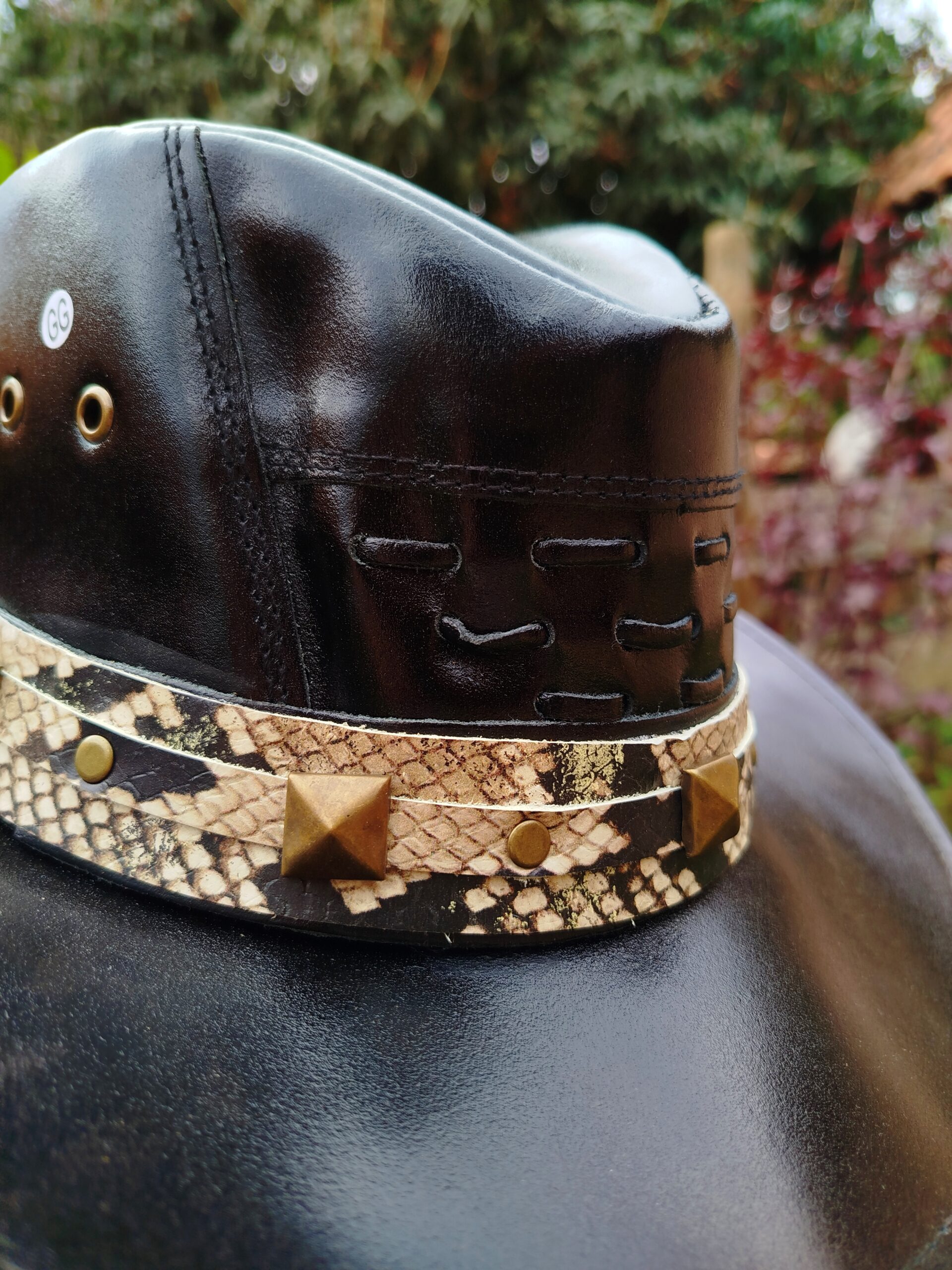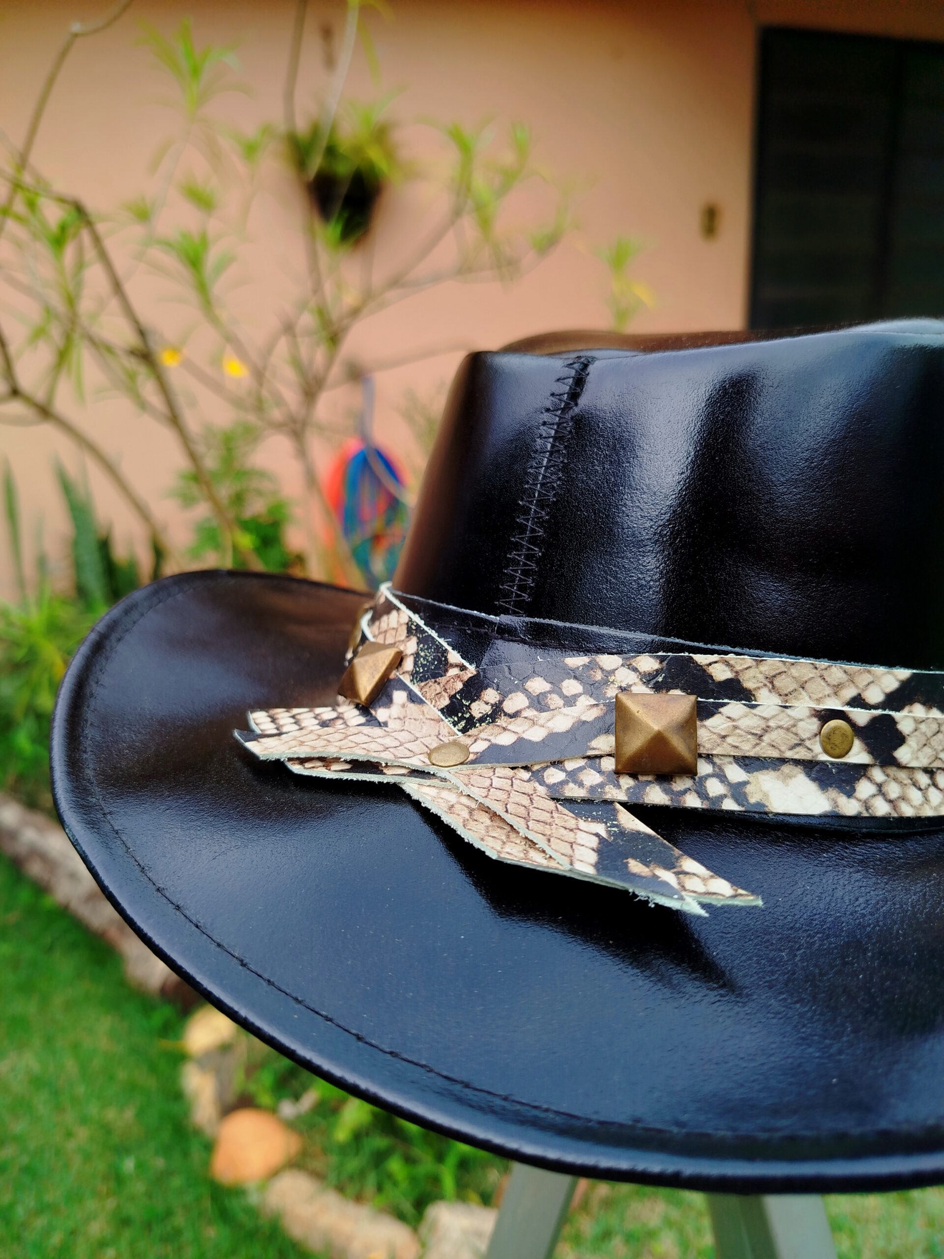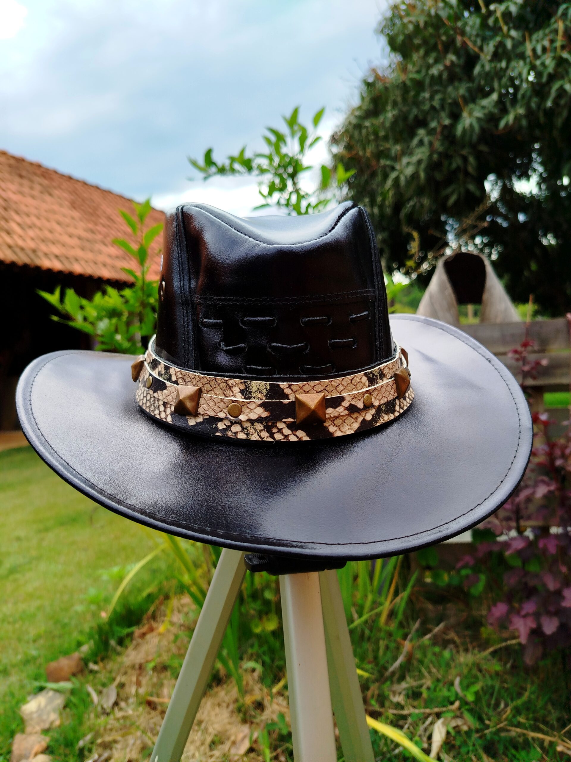 Chapéu artesanal de couro legítimo com design High Custom. Cada detalhe é resultado de um processo de personalização exclusiva, garantindo autenticidade, estilo e presença marcante.