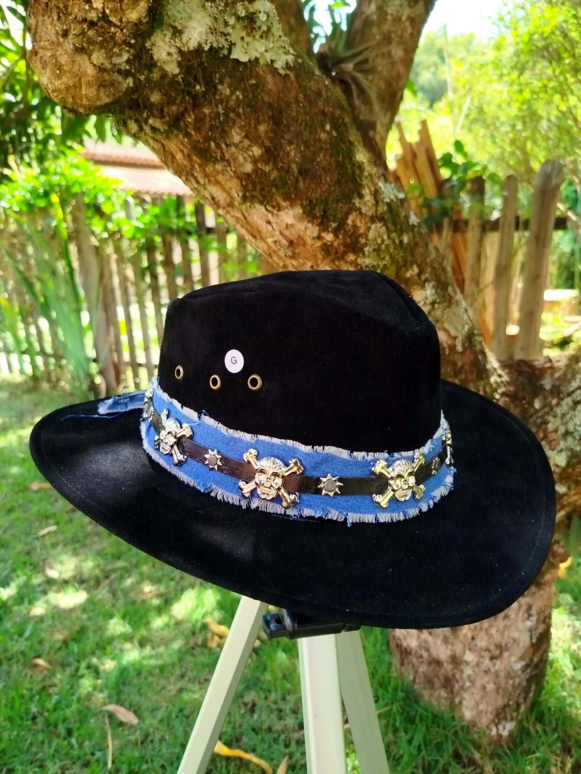 Chapéu artesanal de camurça legítimo com design High Custom. Cada detalhe é resultado de um processo de personalização exclusiva, garantindo autenticidade, estilo e presença marcante.
