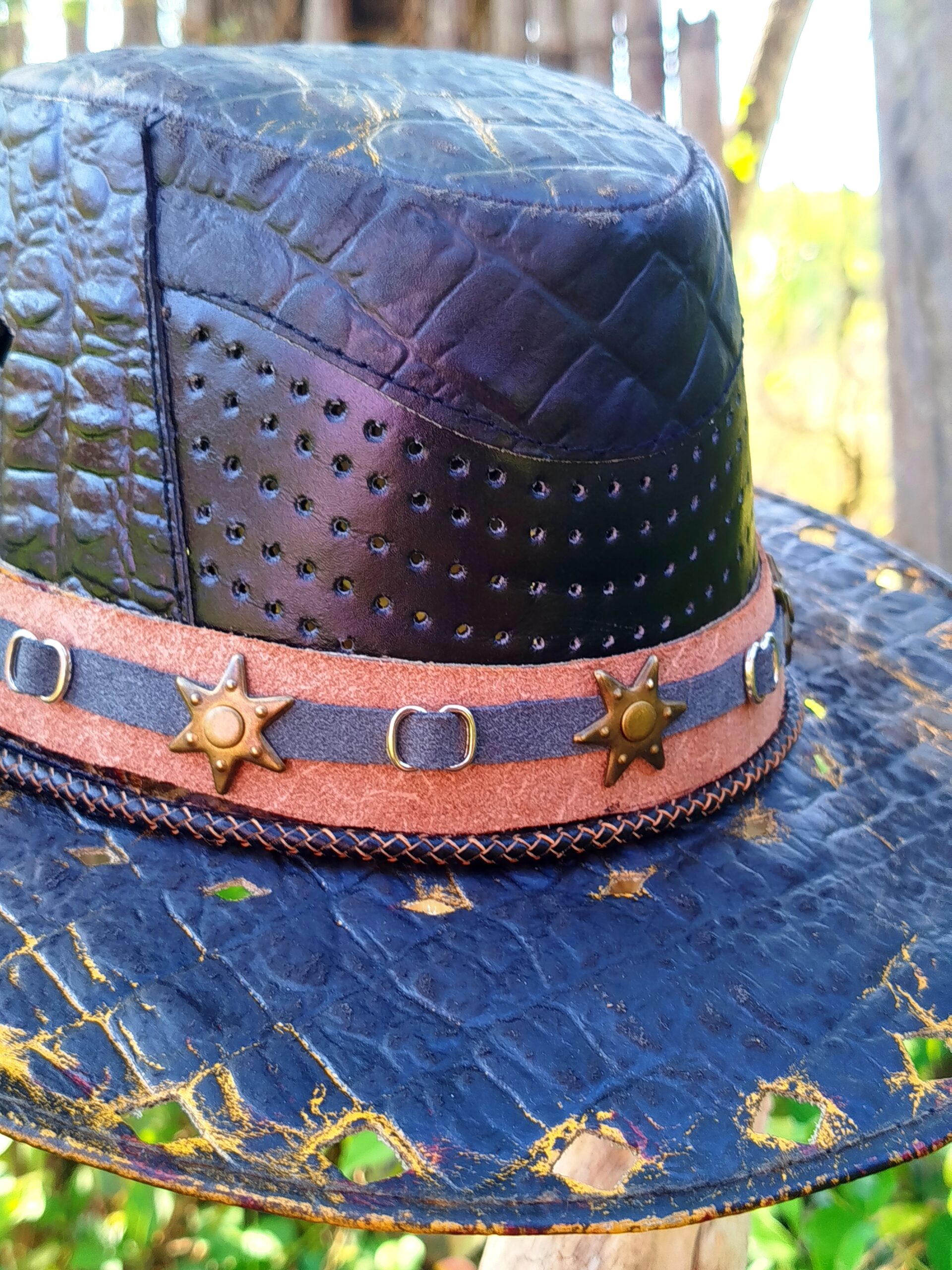 Chapéu artesanal de couro legítimo com design High Custom. Cada detalhe é resultado de um processo de personalização exclusiva, garantindo autenticidade, estilo e presença marcante.