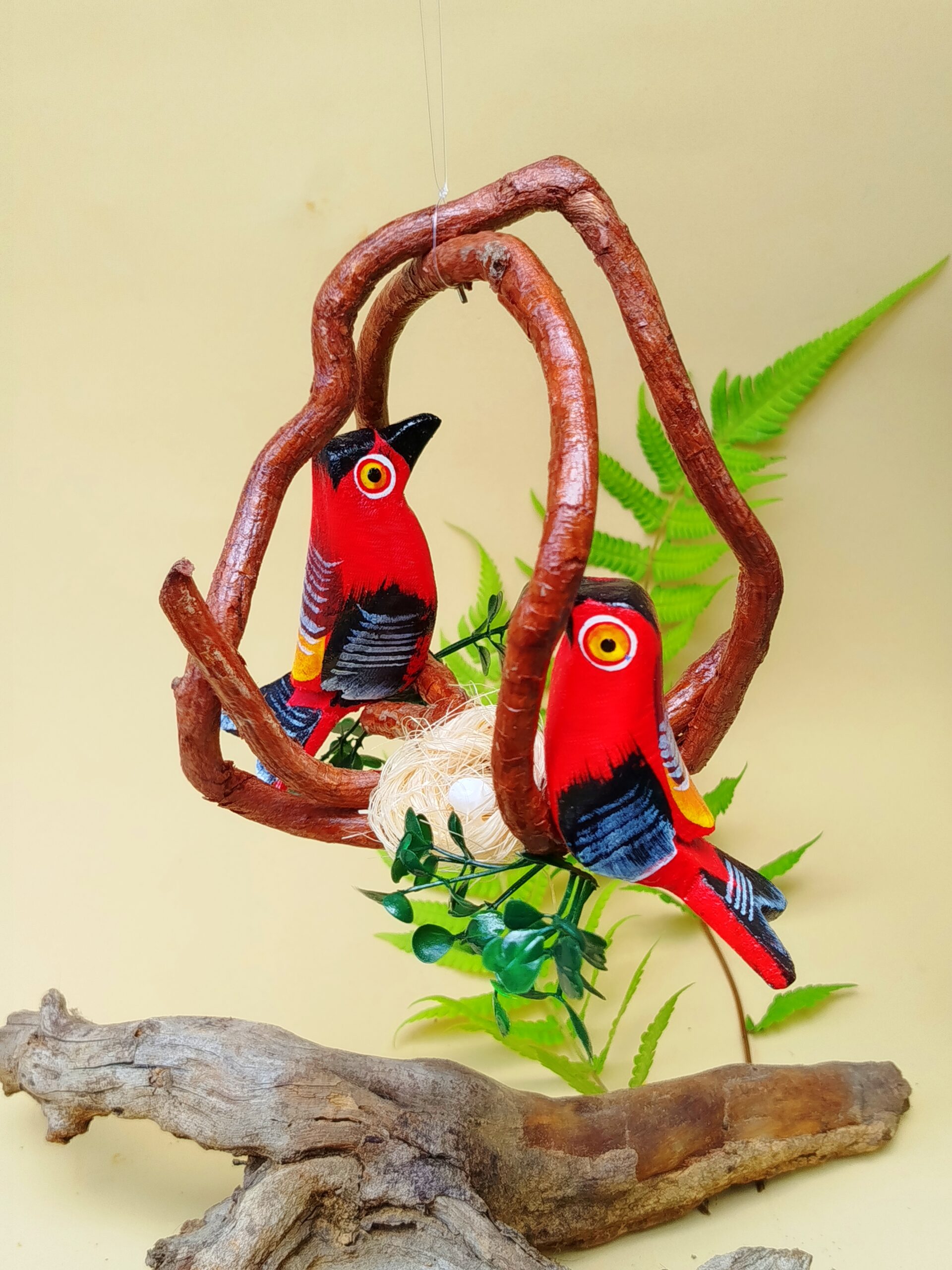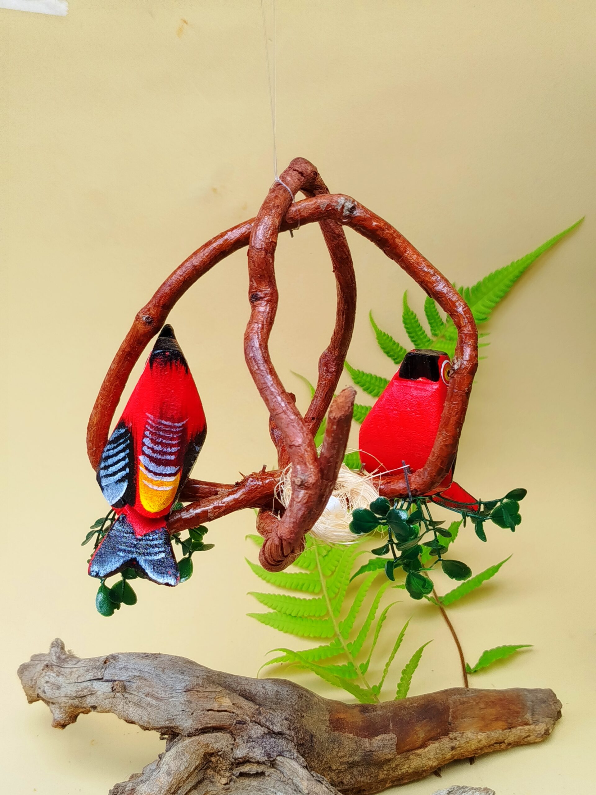 O enfeite suspenso rústico de passarinhos com ninho no cipó é uma peça decorativa feita artesanalmente. Por isso, foi pensada para quem busca integrar elementos naturais, arte manual, sensibilidade estética e aconchego ao seu ambiente.