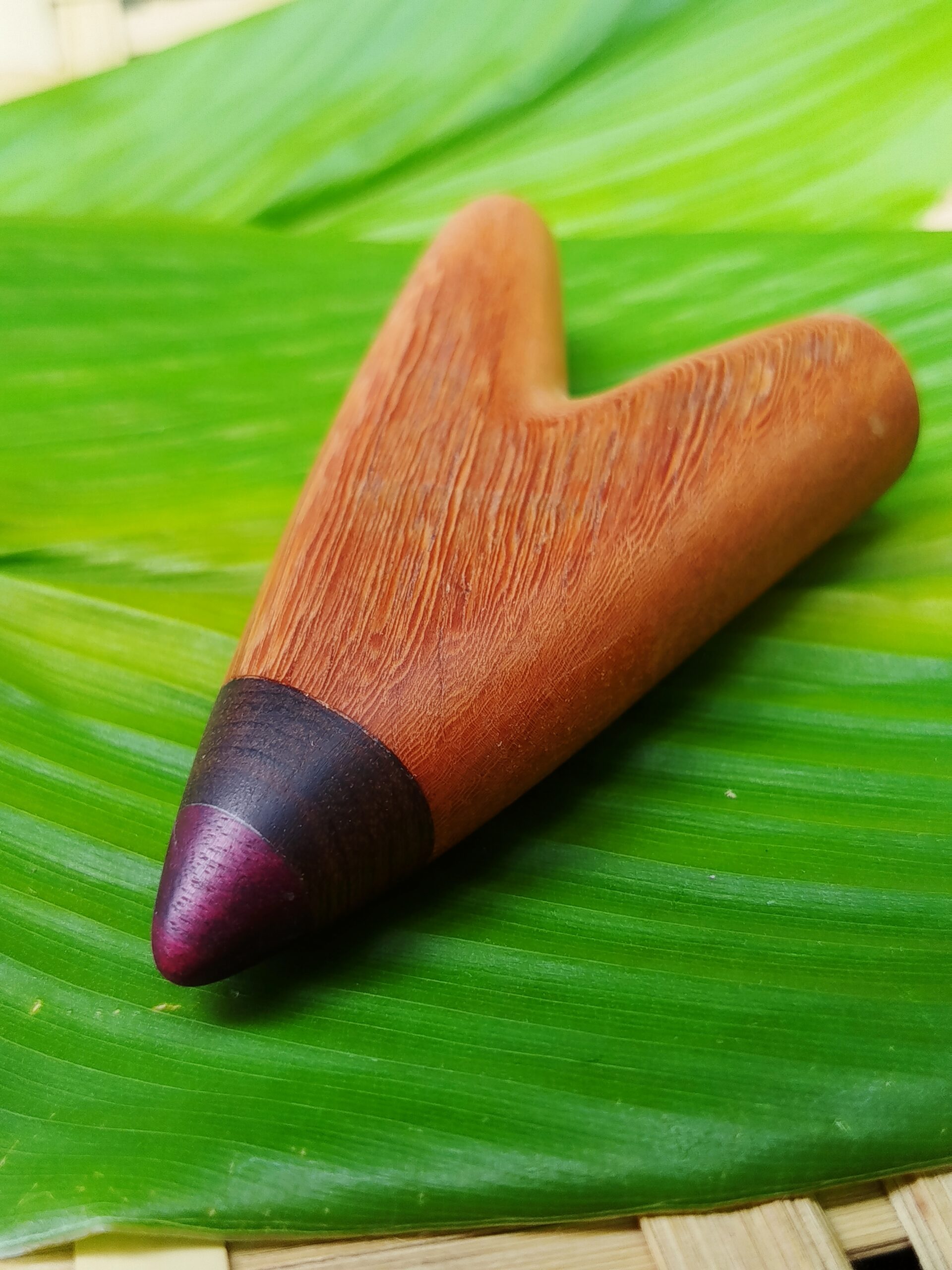 O Kuripe de Peroba com Roxinho é um instrumento tradicional de poder que permite conduzir, com autonomia e consciência, o próprio processo de autoaplicação da Medicina do Rapé. Produzido artesanalmente, cada peça carrega veios únicos da madeira, refletindo a força da floresta.